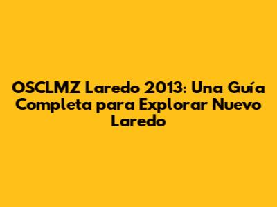 Si planeas visitar Nuevo Laredo, ya sea por motivos relacionados con OSCLMZ 2013 o por cualquier otra razón, aquà tienes algunos consejos para que tu experiencia sea inolvidable: Primero, investiga y planifica tu viaje. Infórmate sobre los eventos que se llevarán a cabo en la ciudad, las atracciones turÃsticas que deseas visitar y las opciones de transporte disponibles. Segundo, empaca de acuerdo al clima. Nuevo Laredo puede ser caluroso y húmedo, especialmente en verano, asà que asegúrate de llevar ropa ligera, protector solar y un sombrero o gorra. Tercero, explora la gastronomÃa local. Prueba los platillos tÃpicos de la región, como la carne asada, los tacos y las enchiladas. No te arrepentirás. Cuarto, sé respetuoso con la cultura local. Aprende algunas frases en español, respeta las costumbres y tradiciones de los habitantes y trata de integrarte a la comunidad. Quinto, mantente seguro. Toma precauciones para proteger tu seguridad personal, evita caminar solo por lugares desconocidos y mantente atento a tus pertenencias. Sexto, aprovecha al máximo tu tiempo. Visita los sitios históricos, explora los mercados locales, disfruta de la vida nocturna y participa en las actividades culturales y de entretenimiento. Finalmente, ¡diviértete! Disfruta de la experiencia, conoce gente nueva y crea recuerdos inolvidables. Al seguir estos consejos, podrás disfrutar al máximo de tu visita a Nuevo Laredo y crear recuerdos inolvidables.