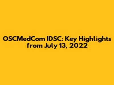 OSCMedCom IDSC: Key Highlights From July 13, 2022