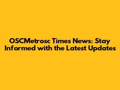 OSCMetrosc Times News: Latest Updates And Insights