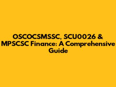 OSCOCSMSSC, SCU0026 & MPSCSC Finance: A Comprehensive Guide