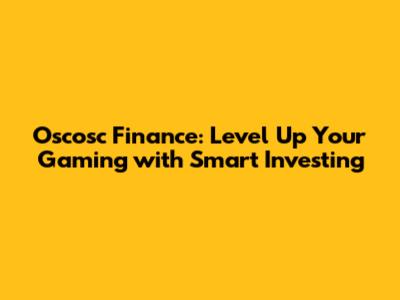 Oscosc Finance: Level Up Your Gaming With Smart Investing