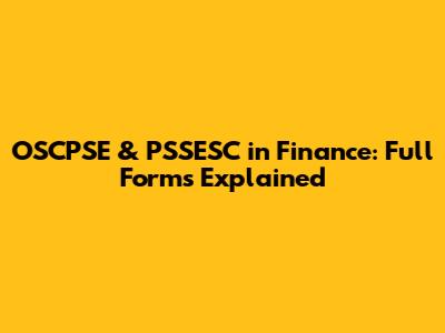 OSCPSE & PSSESC In Finance: Full Forms Explained