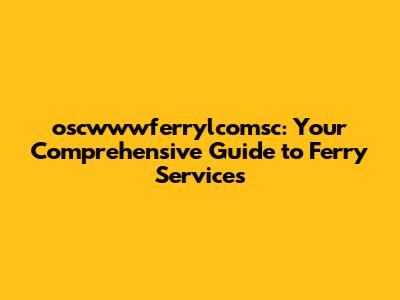 Oscwwwferrylcomsc: Your Guide To Ferry Services