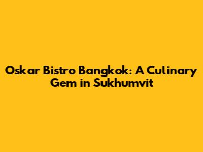 Oskar Bistro Bangkok: A Culinary Gem In Sukhumvit