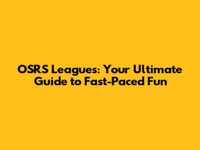 Your Ultimate OSRS League Guide: Tips and Tricks for Success