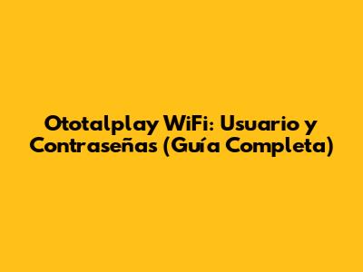 Ototalplay WiFi: Usuario Y Contraseñas (Guía Completa)