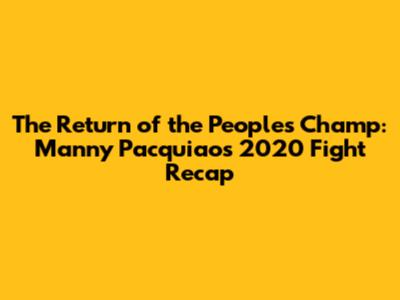 The Return of the People's Champ: Manny Pacquiao's 2020 Fight Recap