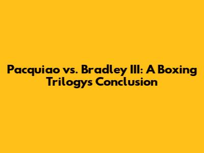 Pacquiao Vs. Bradley III: A Boxing Trilogy's Conclusion