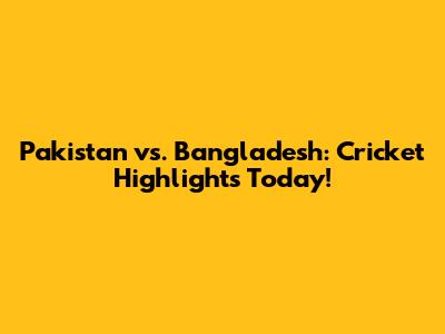 Pakistan Vs. Bangladesh: Cricket Highlights Today!