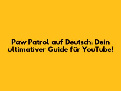 Hey Leute! Seid ihr auch riesige Fans von der Paw Patrol? Ich schon! Diese niedlichen Hunde und ihre Abenteuer sind einfach super, oder? Und das Beste ist, ihr könnt sie ganz einfach auf YouTube auf Deutsch schauen. Ja, richtig gehört! Paw Patrol auf Deutsch auf YouTube ist euer Tor zu unzĂ€hligen Folgen voller Spannung, Spaß und toller Lektionen fĂŒr die Kleinsten. Egal ob Chase, Marshall, Skye oder Rubble – alle eure Lieblingscharaktere warten darauf, von euch entdeckt zu werden. In diesem Artikel nehme ich euch mit auf eine Reise durch die Welt der Paw Patrol auf YouTube, zeige euch, wie ihr die besten Videos findet und warum dieser Kanal fĂŒr eure Kinder ein absolutes Muss ist. Macht euch bereit fĂŒr jede Menge Welpen-Power und spannende Missionen, die eure Kids begeistern werden. Wir tauchen tief ein in die offizielle Welt von Nickelodeon und Paramount, wo die neuesten Episoden und Klassiker auf euch warten. Vergesst nicht, eure Snacks bereit zu halten, denn diese Abenteuer sind nichts fĂŒr schwache Nerven – im positiven Sinne natĂŒrlich! Es geht darum, wie wir durch Teamwork und kluges Denken jede Herausforderung meistern. Die Paw Patrol zeigt uns, dass kein Job zu groß und kein Welpe zu klein ist, um zu helfen. Und auf YouTube gibt es das Ganze in voller LĂ€nge, HD-QualitĂ€t und natĂŒrlich auf Deutsch. Also, schnallt euch an, denn die Welpen sind startklar fĂŒr die nĂ€chste Mission!