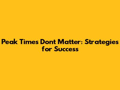 Peak Times Don't Matter: Strategies For Success