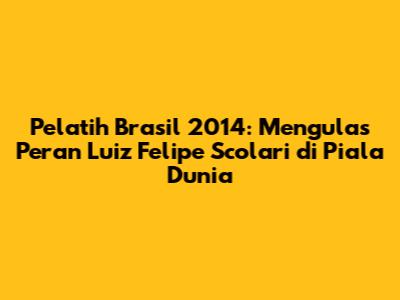 Pelatih Brasil 2014: Kisah Scolari Dan Perjalanan Di Piala Dunia