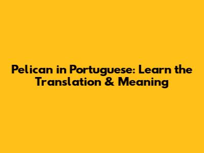 Pelican In Portuguese: Learn The Translation & Meaning
