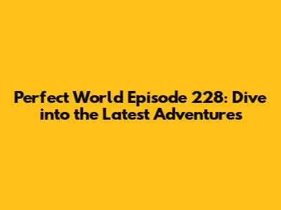 Hey guys! Are you as hyped as I am for the Perfect World series? This epic anime, with its stunning animation and gripping storyline, has captured the hearts of millions. Today, let's dive deep into the latest episode, Episode 228, covering everything from a recap of the key events to the release date and where you can catch all the action. So, buckle up, because we're about to embark on a journey through the captivating world of Shi Hao and his thrilling quest for power and immortality! Understanding the Perfect World universe is key to enjoying each episode to its fullest potential. The story is steeped in Chinese mythology and wuxia elements, creating a rich tapestry of cultivation, clans, and ancient secrets. Our hero, Shi Hao, is a young man destined for greatness, facing countless challenges as he navigates a world filled with powerful beings and treacherous enemies. Episode 228 continues this thrilling saga, so let's get into the nitty-gritty and discuss what went down.
