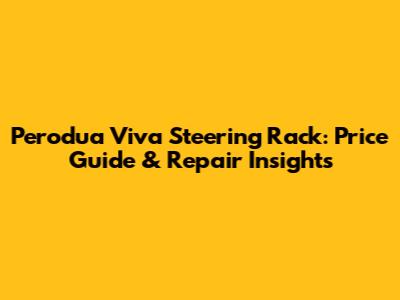 Perodua Viva Steering Rack: Price Guide & Repair Insights