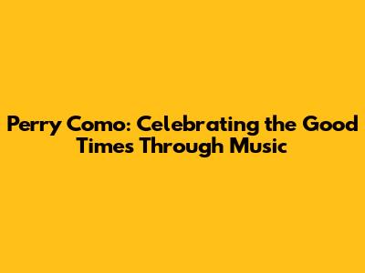 Perry Como: Celebrating The Good Times Through Music