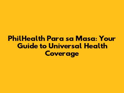 Hey guys! Ever heard of PhilHealth Para sa Masa? If you're scratching your head, no worries! This is a super important program in the Philippines that's all about making sure everyone has access to healthcare. Think of it as a safety net, a helping hand, and a way to ensure that when you or your loved ones get sick, you're not left scrambling for funds. In this comprehensive guide, we'll dive deep into everything you need to know about PhilHealth Para sa Masa, from what it is, who's eligible, how it works, and how to make the most of it. So, buckle up, because we're about to embark on a journey to understand this awesome program that aims to provide universal health coverage to all Filipinos!