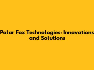 Polar Fox Technologies: Innovations And Solutions