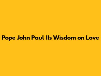 Pope John Paul II's Wisdom On Love