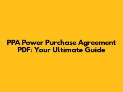 PPA Power Purchase Agreement PDF: Your Ultimate Guide