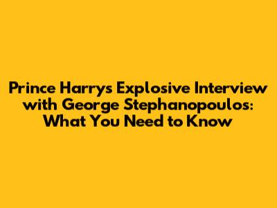 Prince Harry's Explosive Interview With George Stephanopoulos