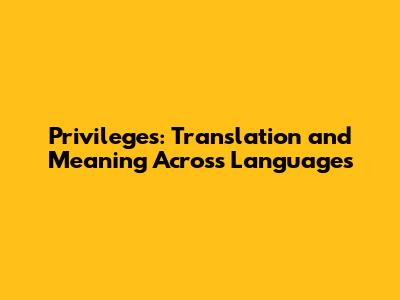 Privileges: Translation And Meaning Across Languages