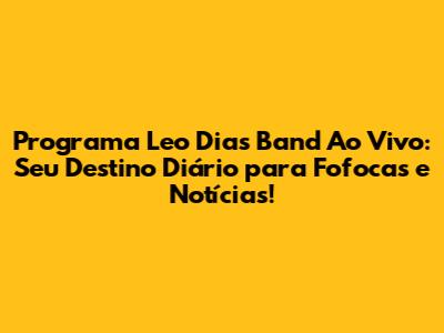 Como Assistir ao Programa Leo Dias na Band Ao Vivo