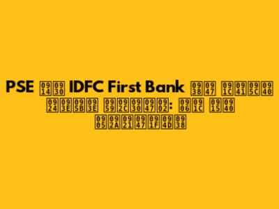 PSE, IDFC First Bank News In Hindi: Latest Updates