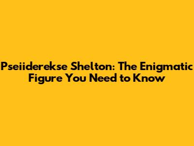 Pseiiderekse Shelton: The Enigmatic Figure You Need To Know
