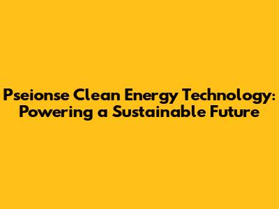 Pseionse Clean Energy Tech: A Sustainable Future