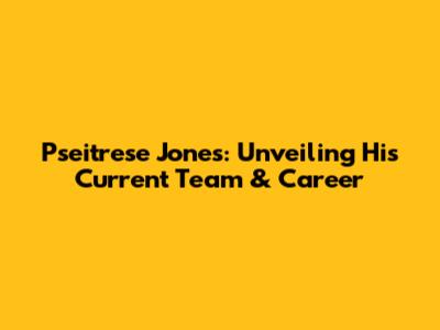 Pseitrese Jones: Unveiling His Current Team & Career
