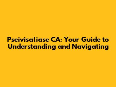 Pseivisaliase CA: Your Guide To Understanding And Navigating