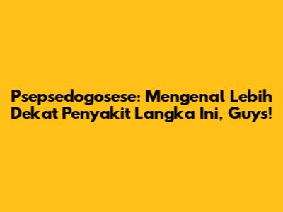 Hai, guys! Pernah dengar kata 'Psepsedogosese'? Mungkin terdengar asing di telinga kalian, ya? Nah, kali ini kita akan mengupas tuntas tentang Psepsedogosese, sebuah kondisi yang mungkin jarang dibicarakan tapi penting untuk kita ketahui. Sesuai namanya yang unik, Psepsedogosese ini termasuk dalam kategori penyakit langka. Penyakit langka itu ibarat permata tersembunyi, jarang terlihat tapi punya cerita dan dampak yang luar biasa. Dalam dunia medis, penyakit langka adalah kondisi yang mempengaruhi sejumlah kecil orang dibandingkan dengan populasi umum. Batasan jumlahnya bervariasi di setiap negara, tapi intinya, kalau suatu penyakit itu jarang banget ditemui, kemungkinan besar masuk kategori langka. Nah, Psepsedogosese ini adalah salah satu contohnya. Mungkin kalian bertanya-tanya, 'Apa sih sebenarnya Psepsedogosese itu?' dan 'Kenapa penting banget kita bahas ini?' Jawabannya adalah karena memahami penyakit langka seperti Psepsedogosese bukan cuma soal menambah wawasan, tapi juga tentang meningkatkan kesadaran dan empati kita terhadap mereka yang mengalaminya. Semakin kita tahu, semakin kita bisa memberikan dukungan yang tepat. Selain itu, dengan meningkatnya kesadaran, penelitian dan penanganan untuk penyakit langka juga bisa terus berkembang. Jangan salah, guys, meskipun langka, dampak dari Psepsedogosese bisa sangat signifikan bagi penderitanya dan keluarga. Mulai dari tantangan dalam diagnosis, keterbatasan pilihan pengobatan, hingga stigma sosial yang mungkin dihadapi. Oleh karena itu, artikel ini hadir untuk membawa kalian lebih dekat pada pemahaman tentang Psepsedogosese, mulai dari apa itu, gejala umum yang mungkin muncul, hingga bagaimana dunia medis berusaha menangani kondisi ini. Siap untuk menyelami dunia Psepsedogosese? Yuk, kita mulai petualangan informatif ini!