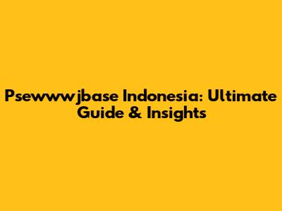 Psewwwjbase Indonesia: Ultimate Guide & Insights