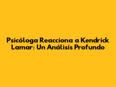 Psicóloga Reacciona A Kendrick Lamar: Un Análisis Profundo