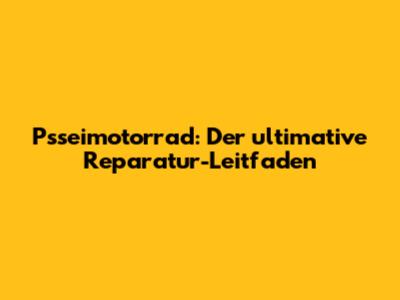 Psseimotorrad: Der Ultimative Reparatur-Leitfaden