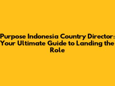 Purpose Indonesia Country Director: A Career Guide
