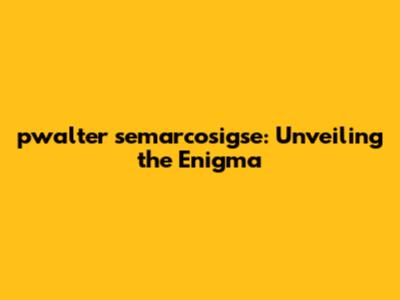 Pwalter Semarcosigse: Unveiling The Enigma
