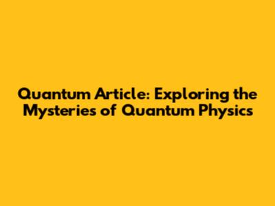 Quantum Article: Exploring The Mysteries Of Quantum Physics