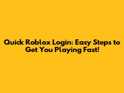 Quick Roblox Login: Easy Steps To Get You Playing Fast!