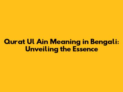Qurat Ul Ain Meaning In Bengali: A Deep Dive
