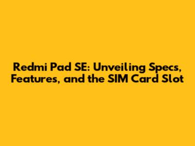 Redmi Pad SE: Specs, Features & SIM Card Slot Explained!