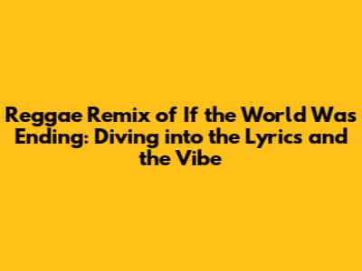 Reggae Remix Of 'If The World Was Ending': Lyrics & Vibe