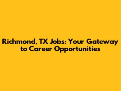Richmond, TX Jobs: Your Guide To Local Opportunities
