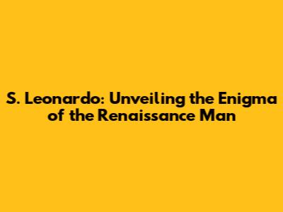 S. Leonardo: Unveiling The Enigma Of The Renaissance Man