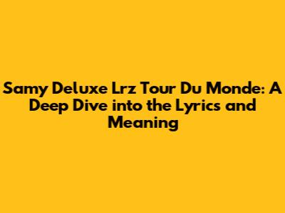 Hey guys! Let's dive deep into one of Samy Deluxe's most iconic tracks, "Lrz Tour Du Monde." This song isn't just a catchy tune; it's a lyrical journey packed with clever wordplay, social commentary, and a whole lot of swagger. If you've ever wondered what Samy D. is really saying, you're in the right place. We're going to break down the lyrics, explore the themes, and uncover the meaning behind this German hip-hop classic.