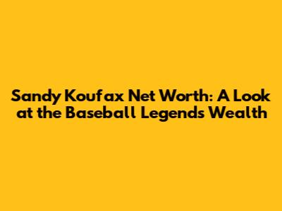 Sandy Koufax Net Worth: A Look At The Baseball Legend's Wealth