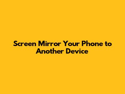 Screen Mirror Your Phone To Another Device