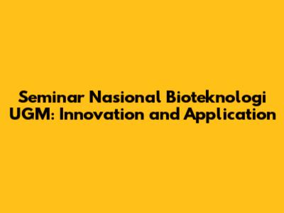 Seminar Nasional Bioteknologi UGM: Innovation And Application