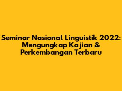 Seminar Nasional Linguistik 2022 akan membahas berbagai sub-bidang linguistik secara mendalam. Pembahasan fonologi akan membahas struktur bunyi bahasa, sementara morfologi akan fokus pada pembentukan kata. Sintaksis akan mempelajari struktur kalimat, sedangkan semantik akan mengeksplorasi makna kata dan kalimat. Pragmatik akan mengkaji penggunaan bahasa dalam konteks komunikasi. Selain itu, sosiolinguistik akan membahas hubungan antara bahasa dan masyarakat, sementara psikolinguistik akan mempelajari proses mental yang terlibat dalam penggunaan bahasa. Neurolinguistik akan menjelajahi dasar saraf bahasa.